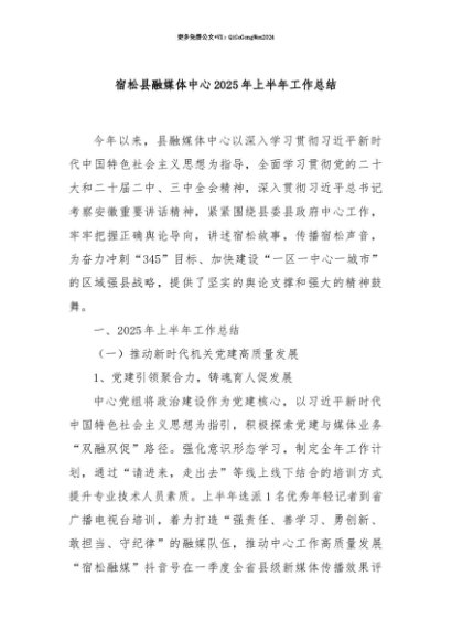 【七哥公文】2025年:【七哥公文】宿松县融媒体中心2025年上半年工作总结+更多免费公文+VX:QiGeGongWen2024+更多免费公文+VX:QiGeGongWen2024