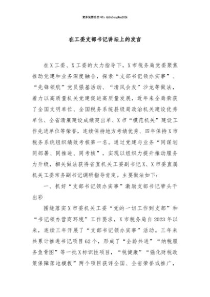 【七哥公文】2025年:【七哥公文】在工委支部书记讲坛上的发言+更多免费公文+VX:QiGeGongWen2024+更多免费公文+VX:QiGeGongWen2024