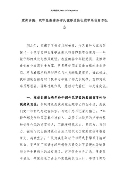 【七哥公文】2025年:【七哥公文】党课讲稿:筑牢根基锤炼作风在奋进新征程中展现青春担当+更多免费公文+VX:QiGeGongWen2024+更多免费公文+VX:QiGeGongWen2024