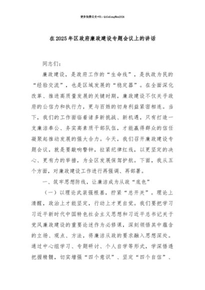 【七哥公文】2025年:【七哥公文】在2025年区政府廉政建设专题会议上的讲话+更多免费公文+VX:QiGeGongWen2024+更多免费公文+VX:QiGeGongWen2024