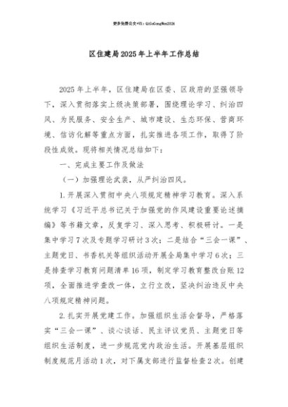 【七哥公文】2025年:【七哥公文】区住建局2025年上半年工作总结+更多免费公文+VX:QiGeGongWen2024+更多免费公文+VX:QiGeGongWen2024