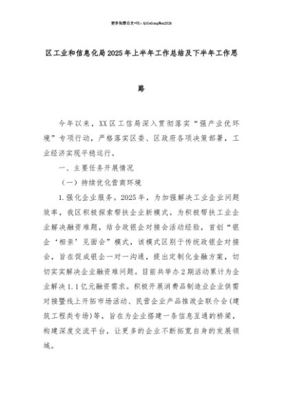 【七哥公文】2025年:【七哥公文】区工业和信息化局2025年上半年工作总结及下半年工作思路+更多免费公文+VX:QiGeGongWen2024+更多免费公文+VX:QiGeGongWen2024