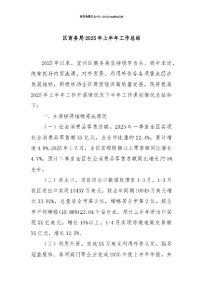 【七哥公文】2025年:【七哥公文】区商务局2025年上半年工作总结+更多免费公文+VX:QiGeGongWen2024+更多免费公文+VX:QiGeGongWen2024