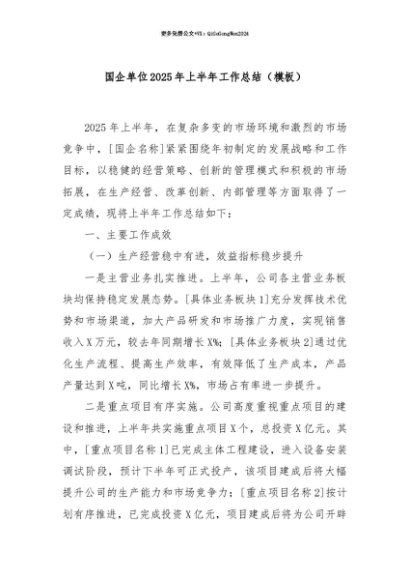 【七哥公文】2025年:【七哥公文】国企单位2025年上半年工作总结(模板)+更多免费公文+VX:QiGeGongWen2024+更多免费公文+VX:QiGeGongWen2024