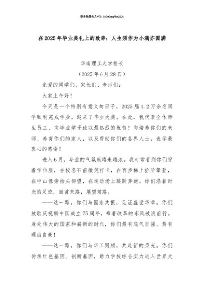 【七哥公文】2025年:【七哥公文】在2025年毕业典礼上的致辞:人生须作为小满亦圆满+更多免费公文+VX:QiGeGongWen2024+更多免费公文+VX:QiGeGongWen2024