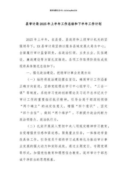 【七哥公文】2025年:【七哥公文】县审计局2025年上半年工作总结和下半年工作计划+更多免费公文+VX:QiGeGongWen2024+更多免费公文+VX:QiGeGongWen2024