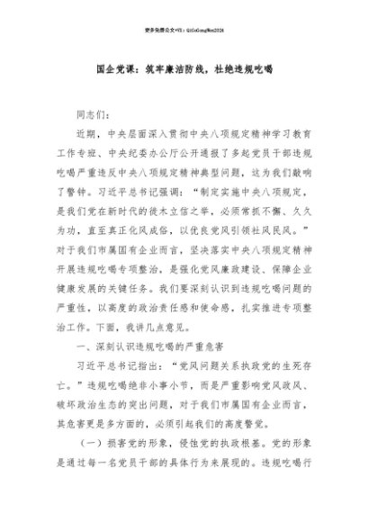 【七哥公文】2025年:【七哥公文】国企党课:筑牢廉洁防线,杜绝违规吃喝+更多免费公文+VX:QiGeGongWen2024+更多免费公文+VX:QiGeGongWen2024