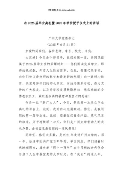 【七哥公文】2025年:【七哥公文】在2025届毕业典礼暨2025年学位授予仪式上的讲话+更多免费公文+VX:QiGeGongWen2024+更多免费公文+VX:QiGeGongWen2024