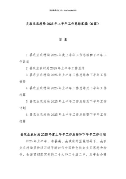 【七哥公文】2025年:【七哥公文】(6篇)县农业农村局2025年上半年工作总结汇编+更多免费公文+VX:QiGeGongWen2024+更多免费公文+VX:QiGeGongWen2024