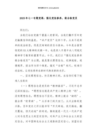【七哥公文】2025年:【七哥公文】2025年七一专题党课:强化党性修养,做合格党员+更多免费公文+VX:QiGeGongWen2024+更多免费公文+VX:QiGeGongWen2024