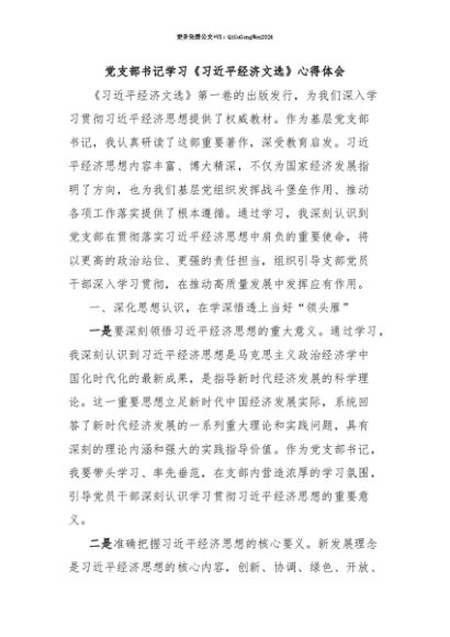【七哥公文】2025年:【七哥公文】党支部书记学习《习近平经济文选》心得体会+更多免费公文+VX:QiGeGongWen2024+更多免费公文+VX:QiGeGongWen2024