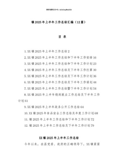 【七哥公文】2025年:【七哥公文】(12篇)镇2025年上半年工作总结汇编+更多免费公文+VX:QiGeGongWen2024+更多免费公文+VX:QiGeGongWen2024