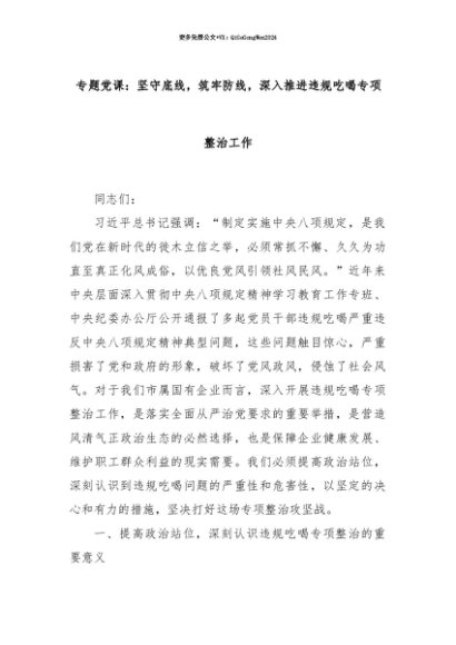 【七哥公文】2025年:【七哥公文】专题党课:坚守底线,筑牢防线,深入推进违规吃喝专项整治工作+更多免费公文+VX:QiGeGongWen2024+更多免费公文+VX:QiGeGongWen2024