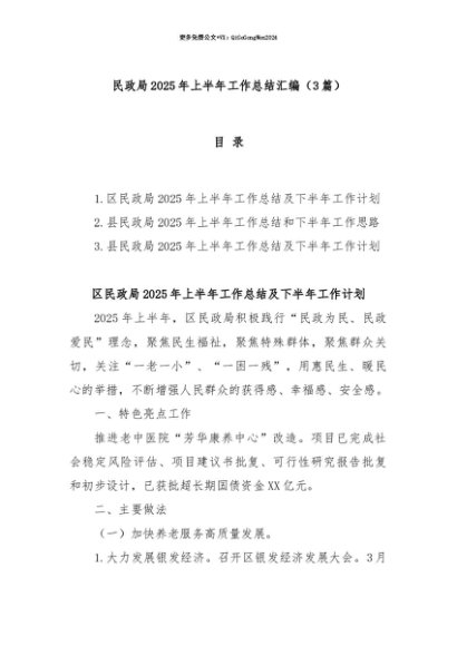 【七哥公文】2025年:【七哥公文】(3篇)民政局2025年上半年工作总结汇编+更多免费公文+VX:QiGeGongWen2024+更多免费公文+VX:QiGeGongWen2024