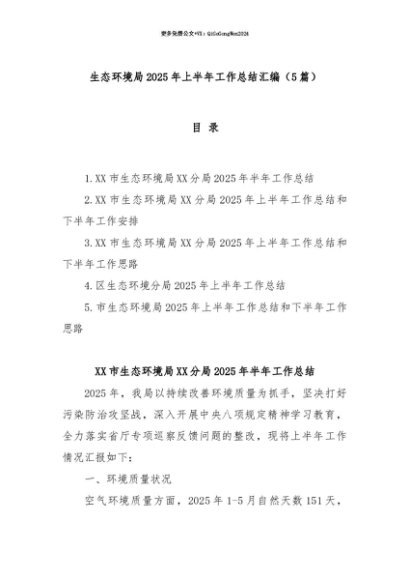 【七哥公文】2025年:【七哥公文】(5篇)生态环境局2025年上半年工作总结汇编+更多免费公文+VX:QiGeGongWen2024+更多免费公文+VX:QiGeGongWen2024