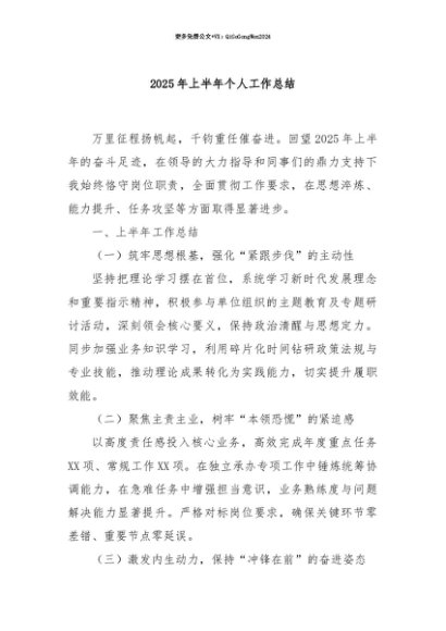 【七哥公文】2025年:【七哥公文】2025年上半年个人工作总结+更多免费公文+VX:QiGeGongWen2024+更多免费公文+VX:QiGeGongWen2024