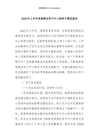 【七哥公文】2025年:【七哥公文】2025年上半年党委理论学习中心组学习情况报告+更多免费公文+VX:QiGeGongWen2024+更多免费公文+VX:QiGeGongWen2024
