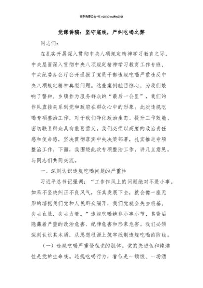 【七哥公文】2025年:【七哥公文】党课讲稿:坚守底线,严纠吃喝之弊+更多免费公文+VX:QiGeGongWen2024+更多免费公文+VX:QiGeGongWen2024