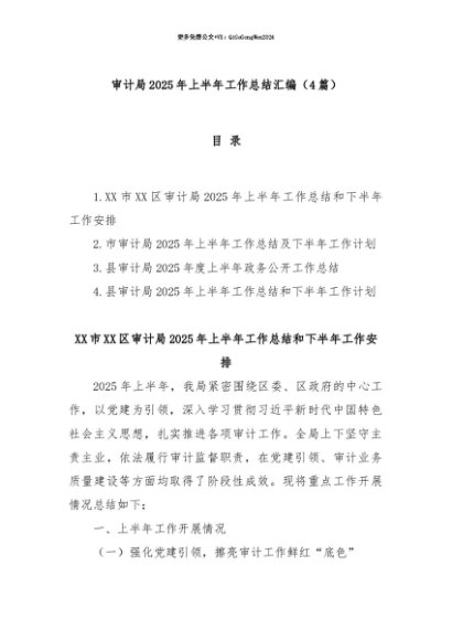 【七哥公文】2025年:【七哥公文】(4篇)审计局2025年上半年工作总结汇编+更多免费公文+VX:QiGeGongWen2024+更多免费公文+VX:QiGeGongWen2024
