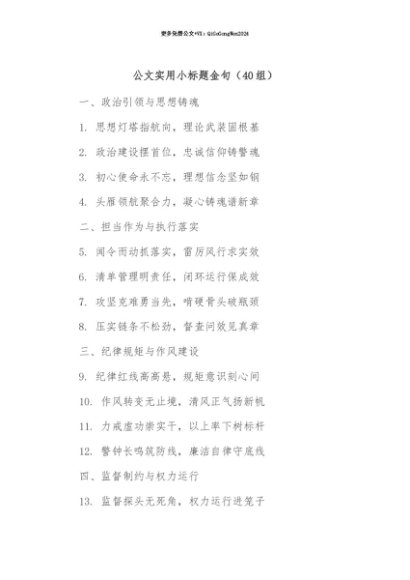 【七哥公文】2025年:【七哥公文】(40组)公文实用小标题金句+更多免费公文+VX:QiGeGongWen2024+更多免费公文+VX:QiGeGongWen2024