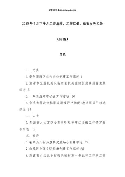 【七哥公文】2025年:【七哥公文】(48篇)2025年6月下半月工作总结、工作汇报、经验材料汇编+更多免费公文+VX:QiGeGongWen2024+更多免费公文+VX:QiGeGongWen2024