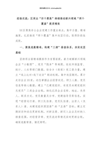 【七哥公文】2025年:【七哥公文】经验交流:区突出“四个聚焦”持续推动新兴领域“两个覆盖”提质增效+更多免费公文+VX:QiGeGongWen2024+更多免费公文+VX:QiGeGongWen2024