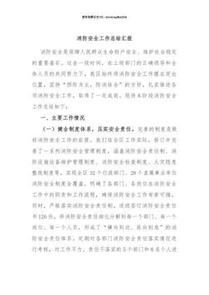 【七哥公文】2025年:【七哥公文】消防安全工作总结汇报+更多免费公文+VX:QiGeGongWen2024+更多免费公文+VX:QiGeGongWen2024