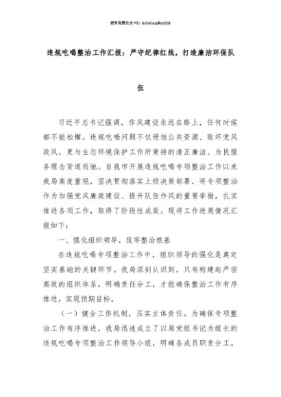 【七哥公文】2025年:【七哥公文】违规吃喝整治工作汇报:严守纪律红线,打造廉洁环保队伍+更多免费公文+VX:QiGeGongWen2024+更多免费公文+VX:QiGeGongWen2024