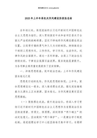【七哥公文】2025年:【七哥公文】2025年上半年局机关作风建设阶段性总结+更多免费公文+VX:QiGeGongWen2024+更多免费公文+VX:QiGeGongWen2024