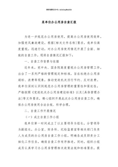 【七哥公文】2025年:【七哥公文】某单位办公用房自查汇报+更多免费公文+VX:QiGeGongWen2024+更多免费公文+VX:QiGeGongWen2024