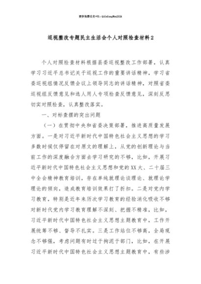 【七哥公文】2025年:【七哥公文】巡视整改专题民主生活会个人对照检查材料2+更多免费公文+VX:QiGeGongWen2024+更多免费公文+VX:QiGeGongWen2024