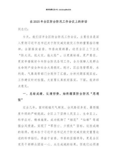 【七哥公文】2025年:【七哥公文】在2025年全区防台防汛工作会议上的讲话+更多免费公文+VX:QiGeGongWen2024+更多免费公文+VX:QiGeGongWen2024