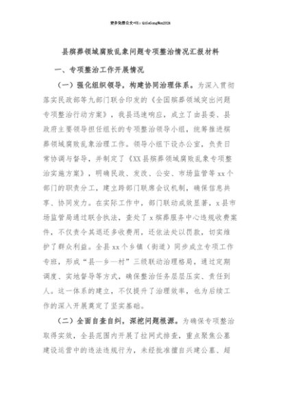 【七哥公文】2025年:【七哥公文】县殡葬领域腐败乱象问题专项整治情况汇报材料+更多免费公文+VX:QiGeGongWen2024+更多免费公文+VX:QiGeGongWen2024