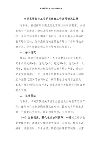 【七哥公文】2025年:【七哥公文】市委直属机关工委党员教育工作开展情况汇报+更多免费公文+VX:QiGeGongWen2024+更多免费公文+VX:QiGeGongWen2024