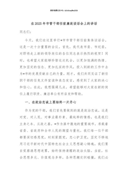 【七哥公文】2025年:【七哥公文】在2025年市管干部任前廉政谈话会上的讲话+更多免费公文+VX:QiGeGongWen2024+更多免费公文+VX:QiGeGongWen2024