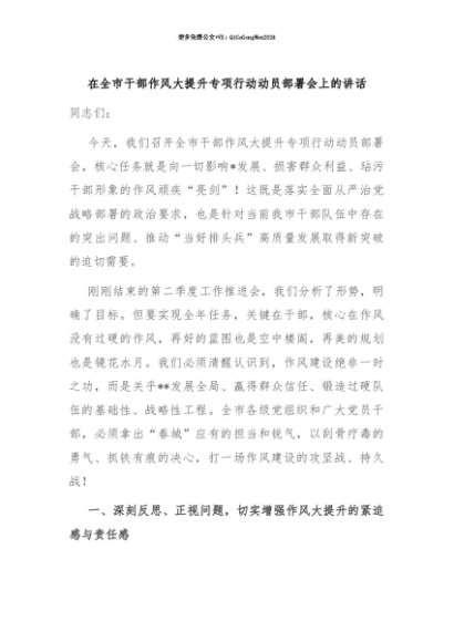 【七哥公文】2025年:【七哥公文】在全市干部作风大提升专项行动动员部署会上的讲话+更多免费公文+VX:QiGeGongWen2024+更多免费公文+VX:QiGeGongWen2024