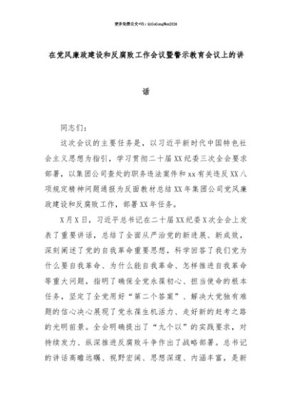 【七哥公文】2025年:【七哥公文】在党风廉政建设和反腐败工作会议暨警示教育会议上的讲话+更多免费公文+VX:QiGeGongWen2024+更多免费公文+VX:QiGeGongWen2024