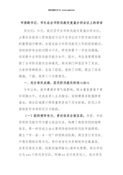 【七哥公文】2025年:【七哥公文】市委副书记、市长在全市防汛救灾复盘分析会议上的讲话+更多免费公文+VX:QiGeGongWen2024+更多免费公文+VX:QiGeGongWen2024
