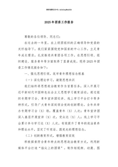 【七哥公文】2025年:【七哥公文】2025年团委工作报告+更多免费公文+VX:QiGeGongWen2024+更多免费公文+VX:QiGeGongWen2024