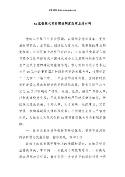 【七哥公文】2025年:【七哥公文】xx党委深化党的建设制度改革总结材料+更多免费公文+VX:QiGeGongWen2024+更多免费公文+VX:QiGeGongWen2024