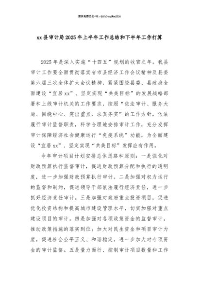 【七哥公文】2025年:【七哥公文】xx县审计局2025年上半年工作总结和下半年工作打算+更多免费公文+VX:QiGeGongWen2024+更多免费公文+VX:QiGeGongWen2024
