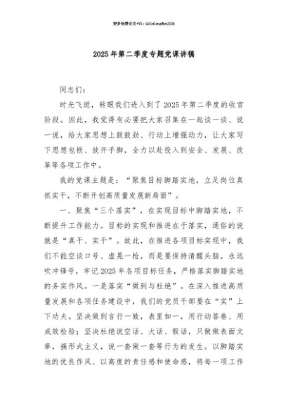 【七哥公文】2025年:【七哥公文】2025年第二季度专题党课讲稿+更多免费公文+VX:QiGeGongWen2024+更多免费公文+VX:QiGeGongWen2024
