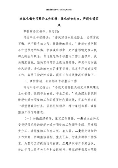 【七哥公文】2025年:【七哥公文】违规吃喝专项整治工作汇报:强化纪律约束,严刹吃喝歪风+更多免费公文+VX:QiGeGongWen2024+更多免费公文+VX:QiGeGongWen2024