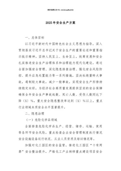 【七哥公文】2025年:【七哥公文】2025年安全生产方案+更多免费公文+VX:QiGeGongWen2024+更多免费公文+VX:QiGeGongWen2024