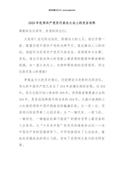 【七哥公文】2025年:【七哥公文】2025年优秀共产党员代表在大会上的发言材料+更多免费公文+VX:QiGeGongWen2024+更多免费公文+VX:QiGeGongWen2024