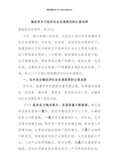 【七哥公文】2025年:【七哥公文】镇政府关于经济社会发展情况的汇报材料+更多免费公文+VX:QiGeGongWen2024+更多免费公文+VX:QiGeGongWen2024