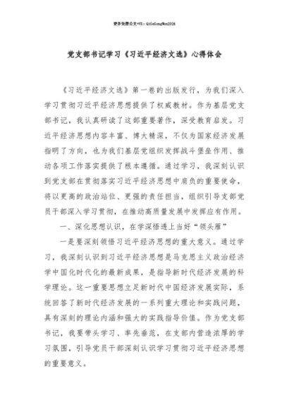 【七哥公文】2025年:【七哥公文】党支部书记学习《总书记经济文选》心得体会+更多免费公文+VX:QiGeGongWen2024+更多免费公文+VX:QiGeGongWen2024