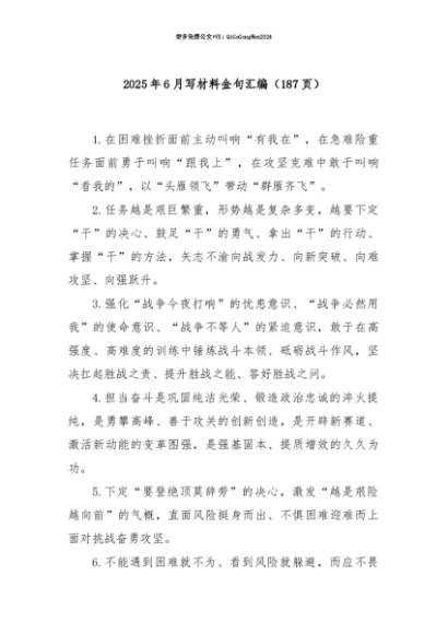 【七哥公文】2025年:【七哥公文】2025年6月写材料金句汇编(187页)+更多免费公文+VX:QiGeGongWen2024+更多免费公文+VX:QiGeGongWen2024