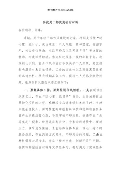 【七哥公文】2025年:【七哥公文】科技局干部交流研讨材料+更多免费公文+VX:QiGeGongWen2024+更多免费公文+VX:QiGeGongWen2024