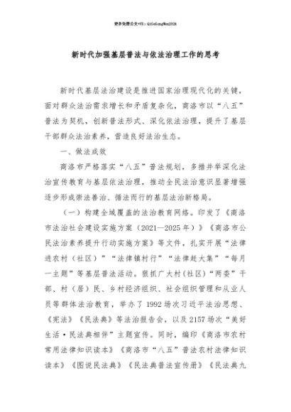 【七哥公文】2025年:【七哥公文】新时代加强基层普法与依法治理工作的思考+更多免费公文+VX:QiGeGongWen2024+更多免费公文+VX:QiGeGongWen2024